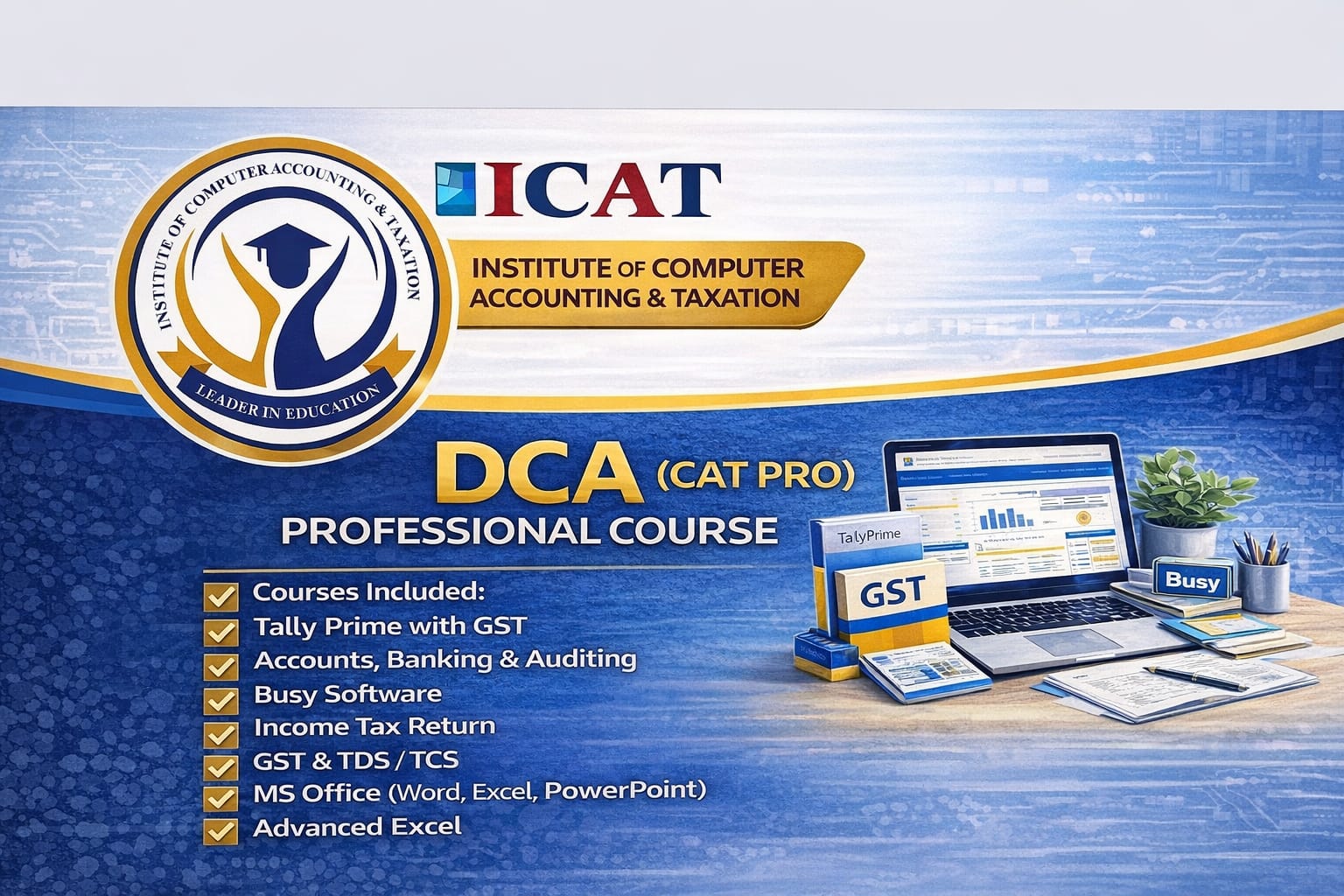 Welcome to ICAT Institute — a premier educational institution dedicated to empowering students with practical skills, industry-oriented training, and career-defining knowledge. With a strong commitment to excellence and professional success, we specialize in computer, accounting, tax, and vocational courses designed to help learners thrive in today’s competitive world.