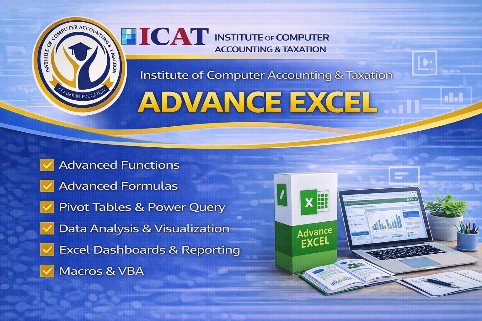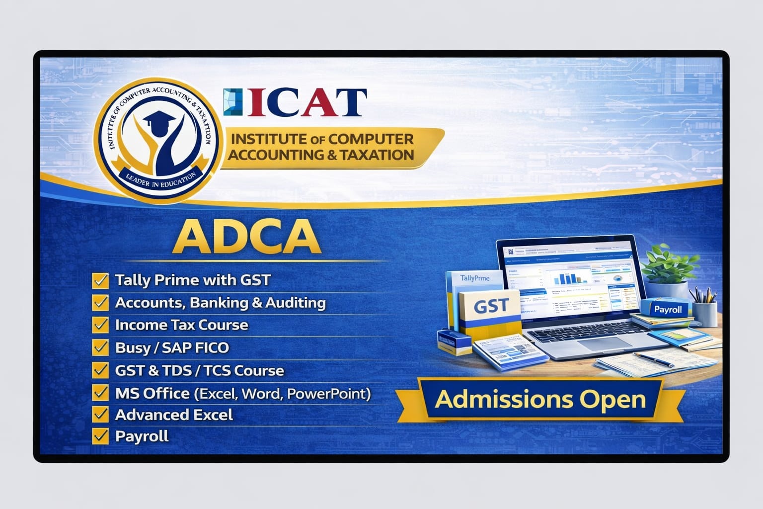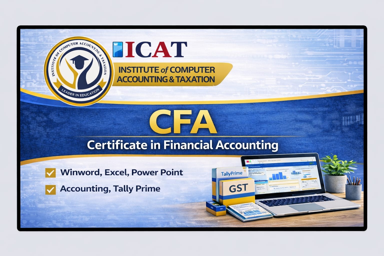 Welcome to ICAT Institute — a premier educational institution dedicated to empowering students with practical skills, industry-oriented training, and career-defining knowledge. With a strong commitment to excellence and professional success, we specialize in computer, accounting, tax, and vocational courses designed to help learners thrive in today’s competitive world.